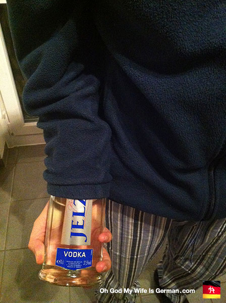 Reenacting the crime – step 2 – put vodka up sleeve.