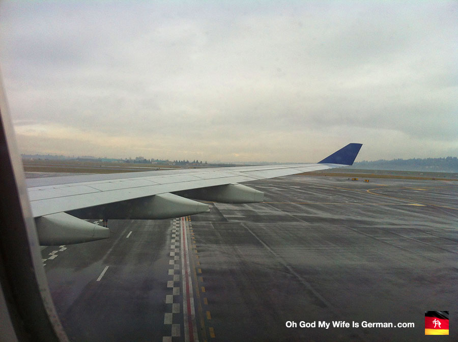 Landing in Portland! The Amsterdam-to-Portland leg of the flight lasted a little over 9 hours, and that airplane wing stayed attached the WHOLE TIME.