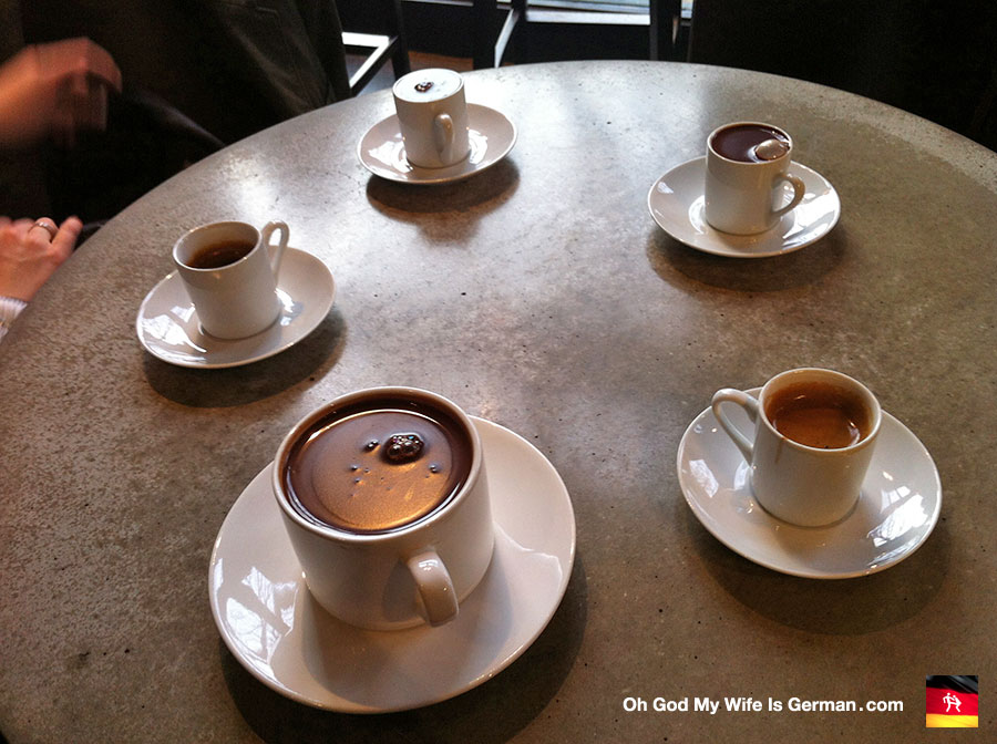 What you’re seeing here are a few cups of melted chocolate and espresso shots at Cacao. It was a fantastic flavor experience, but also the closest I came to puking during the entire trip.