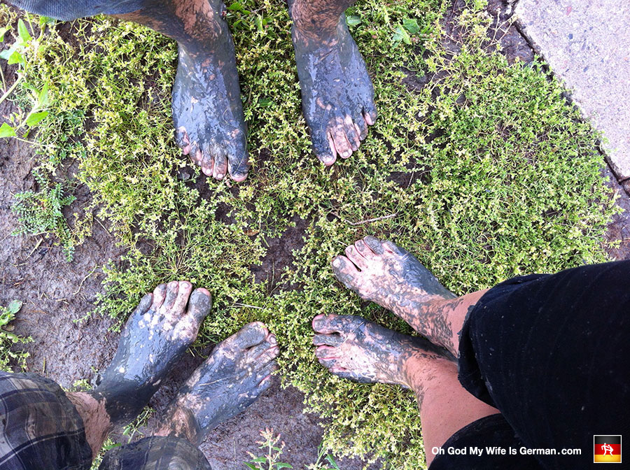 Those are our feet. Little did we know the mud jammed under our toenails would remain for weeks, no matter how hard we cleaned them. GOD! Why did we do this again?