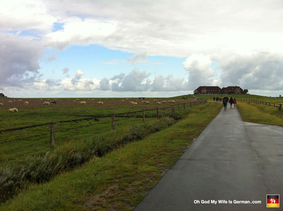This is the road leading up to the main lodge on the Nordstrandischmoor. We were surrounded on all sides by an ocean of stupid sheep.