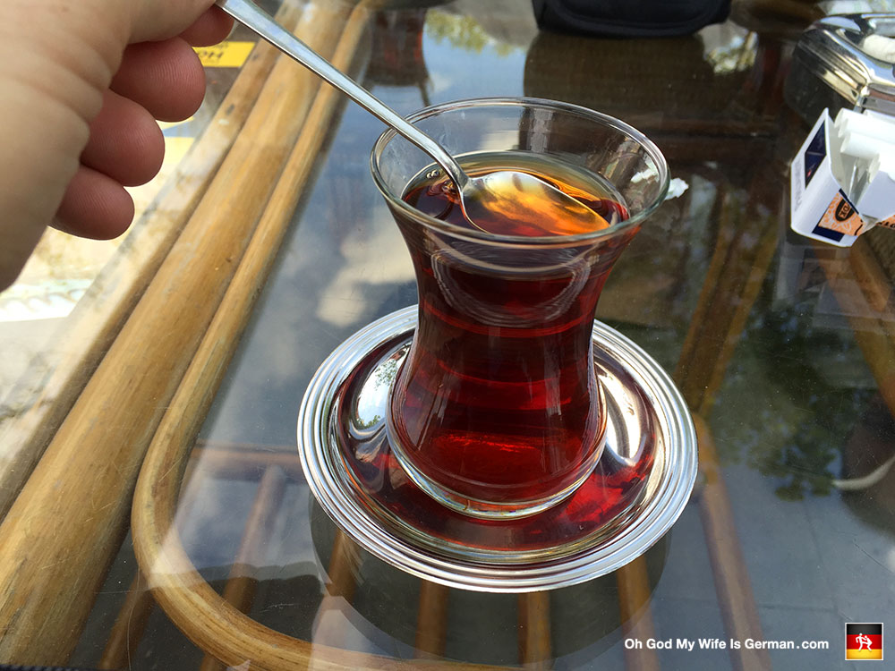 YES. Oh my God yes. In Konya, we drank a lot of çay (pronounced Chai), which is a black tea, though it appears dark red when served in traditional Turkish glasses. It’s also served with cubes of beet sugar and a tiny spoon. (I heard it was a compliment in Konya to loudly clink your spoon inside the glass as you stir it, so I made sure to clink the holy hell out of mine.)