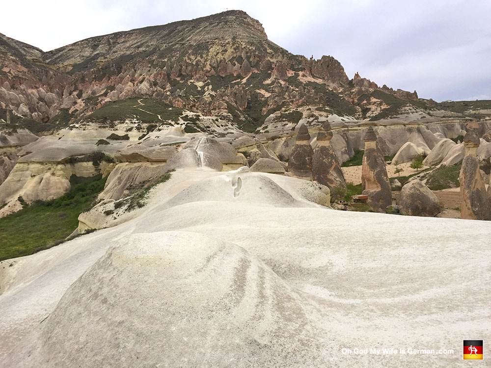The crazy mountains, hills and “fairy chimneys” of Cappadocia were formed when volcanic eruptions blanketed the area with lava. Wind and water eroded everything except the isolated pinnacles you see today, many of which look exactly like giant horse dongs.