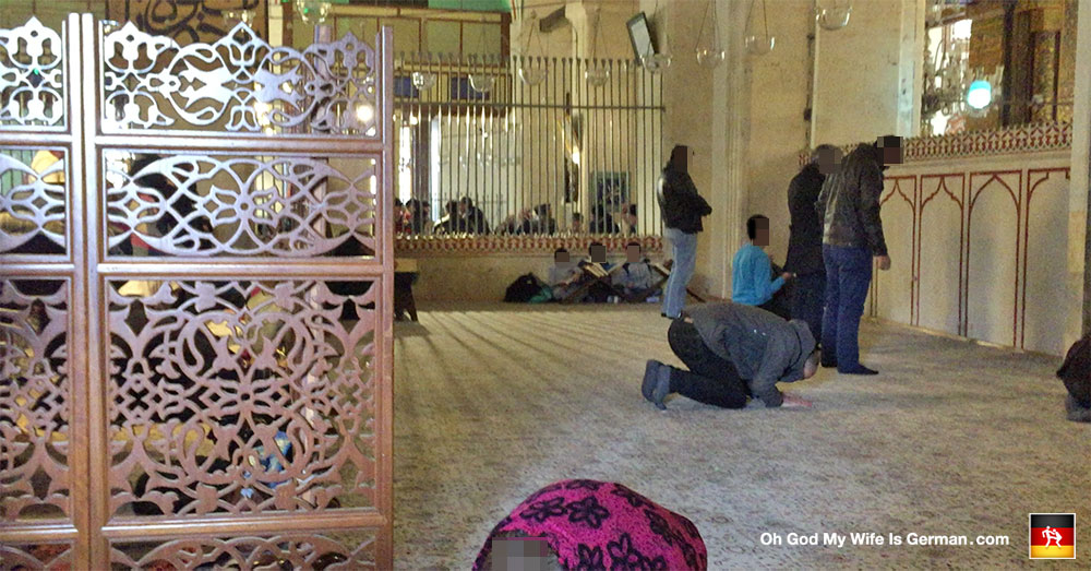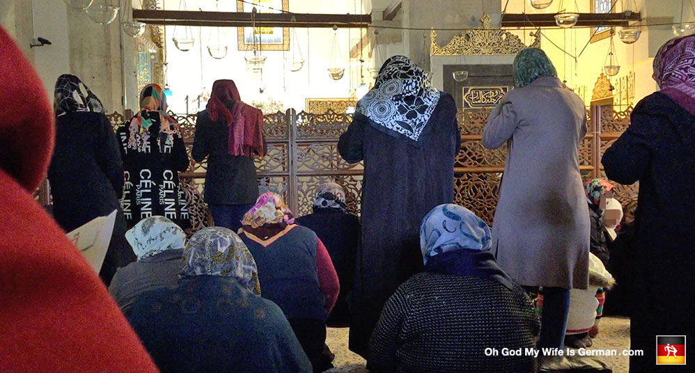 I respect the religious traditions of all people, so long as they don’t include hurting anyone, but this one still bugs me a little. It figuratively and literally places women in a position of secondary importance — at least to my American sensibilities — and I know for damn sure my German wife wouldn’t stand for it: