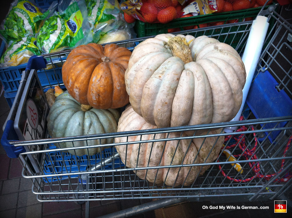 Anyway, my German wife and I were walking along a street in the Linden-Nord district of Hannover when we happened by a Turkish produce stand. They had these massive pumpkins on display, and I pointed them out to my wife, amazed by their size and unusual shape. My wife, however, kept right on walking and said: