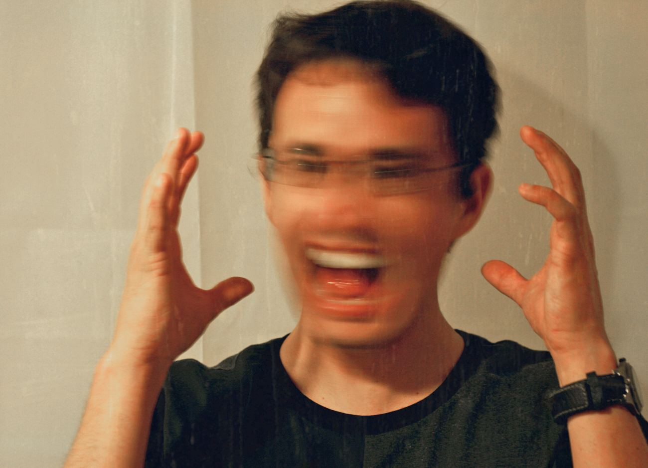 Look, I’m an artist and a writer. I’m naturally protective of my eyes and my hands because, without them, I wouldn’t be able to make a living; I’d just be a blind, handless trophy husband. That’s why I recoil in comedic fashion whenever something comes close to my eyes, like umbrella spikes, pencils, butter knives, hot dogs… basically anything shaped like a dick.