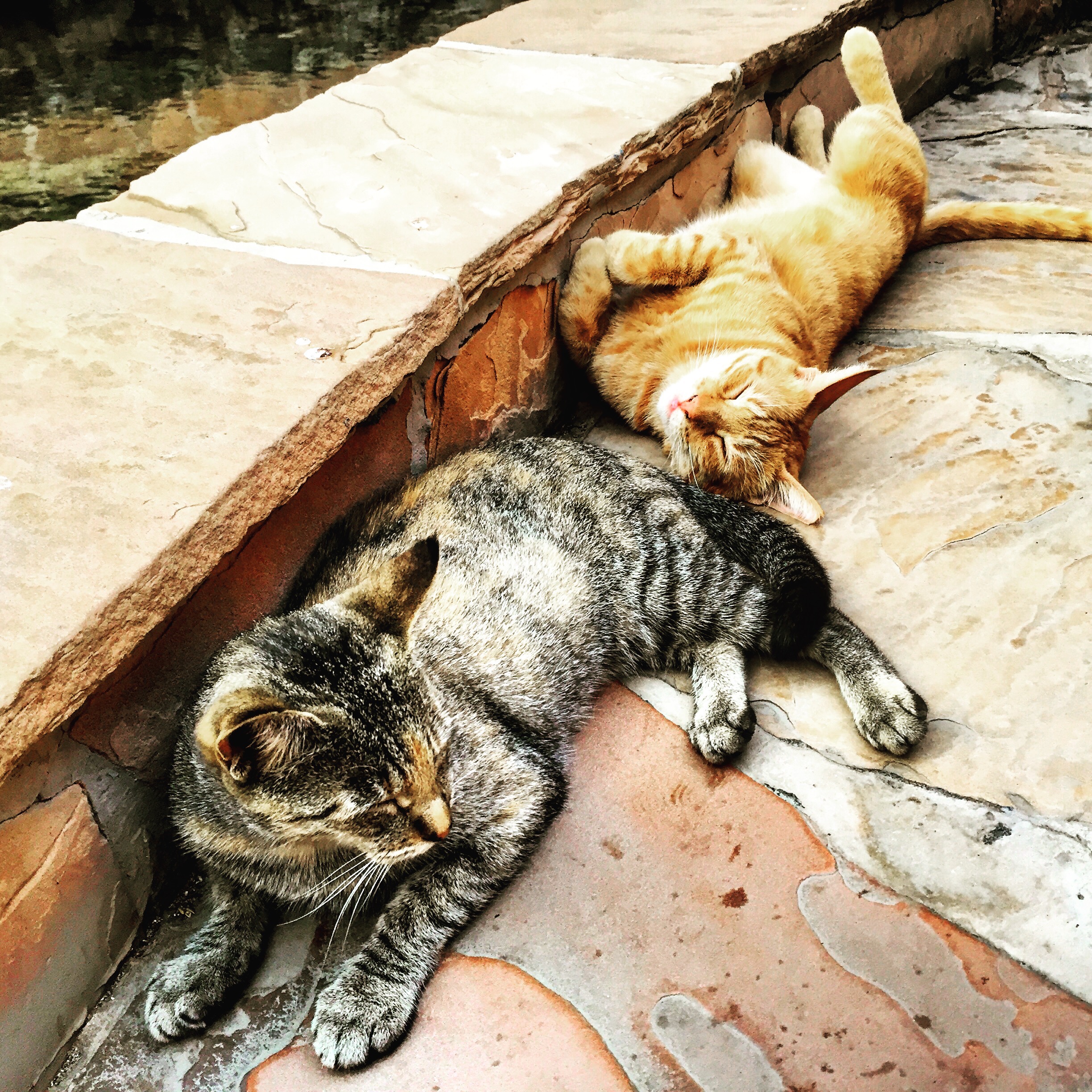 Here are some lazy-ass stray cats. They were all over the hotel, just basking in the glory of paradise all day long; lickin’ asses and chasin’ tails — what a life.