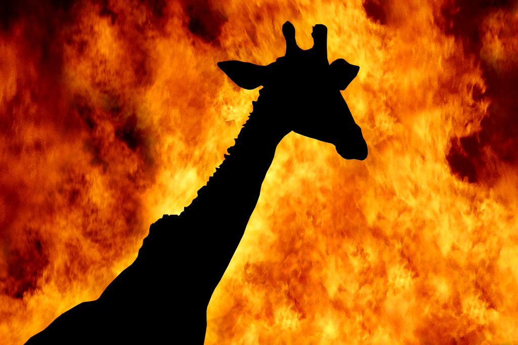 (Image Credit: Giraffe by Derek Keats [https://www.flickr.com/photos/dkeats/] Modified, Subject to CC 2.0 License + Fire Background by Tristan Ferne [https://www.flickr.com/photos/tristanf/3034889893/] Modified, Subject to CC 2.0 License.)
